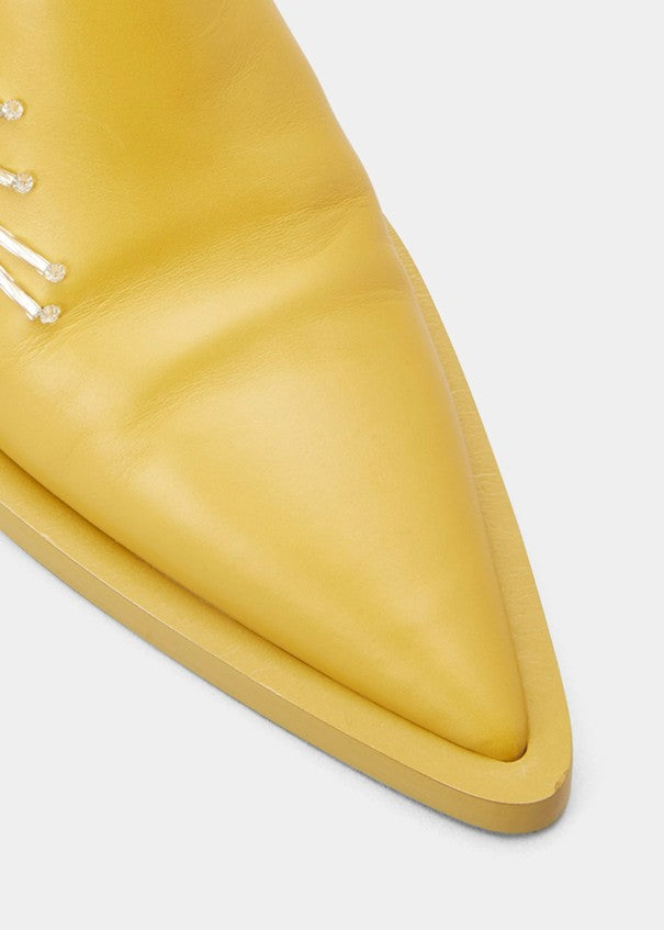 Escarpins à bout pointu en cuir avec bouquet en cristal sur le côté droit.